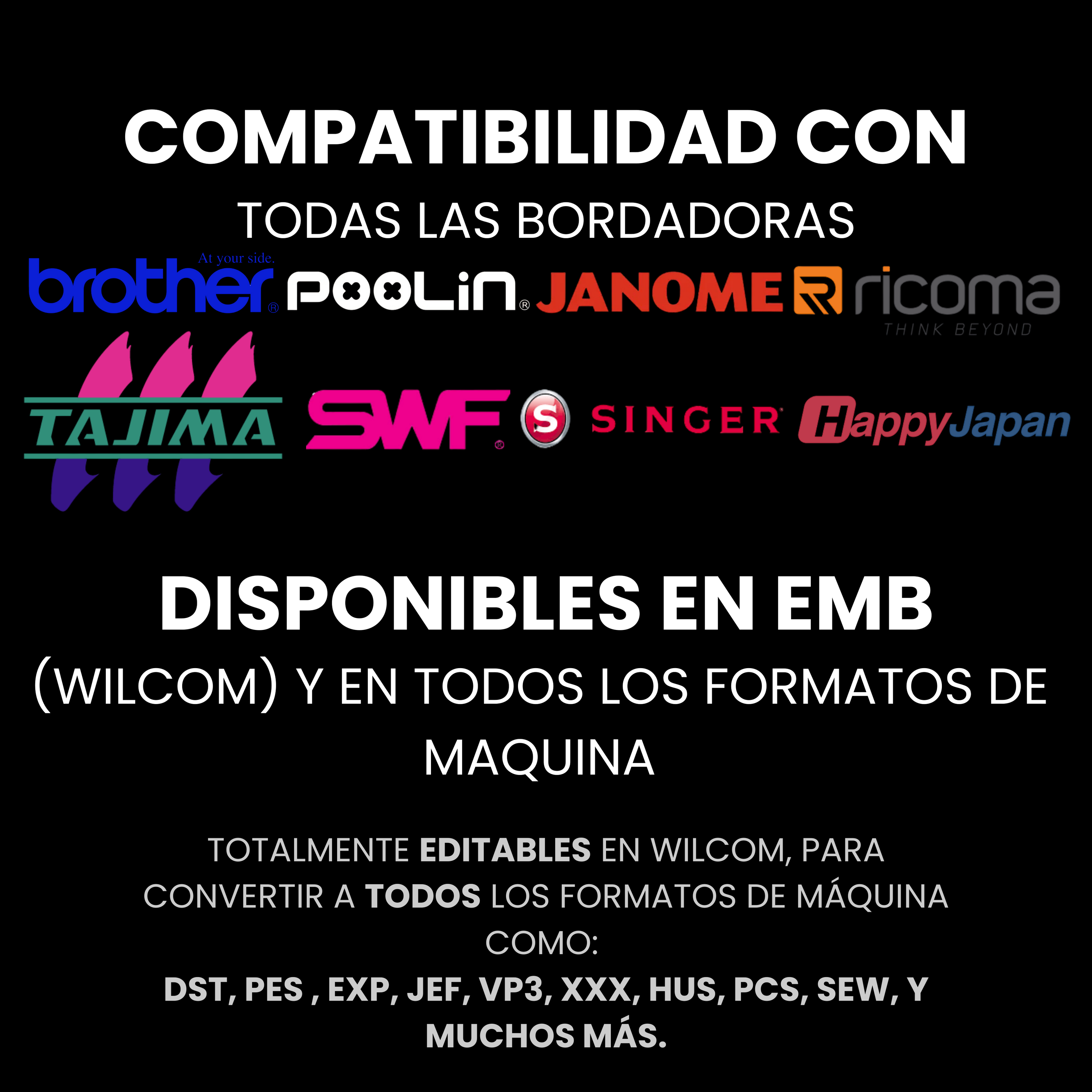 ⚠️ RECOMENDACIÓN: No apto para máquinas con un área máxima de bordado de 10x10 cm (4x4") debido al alto detalle de los diseños y a su tamaño
