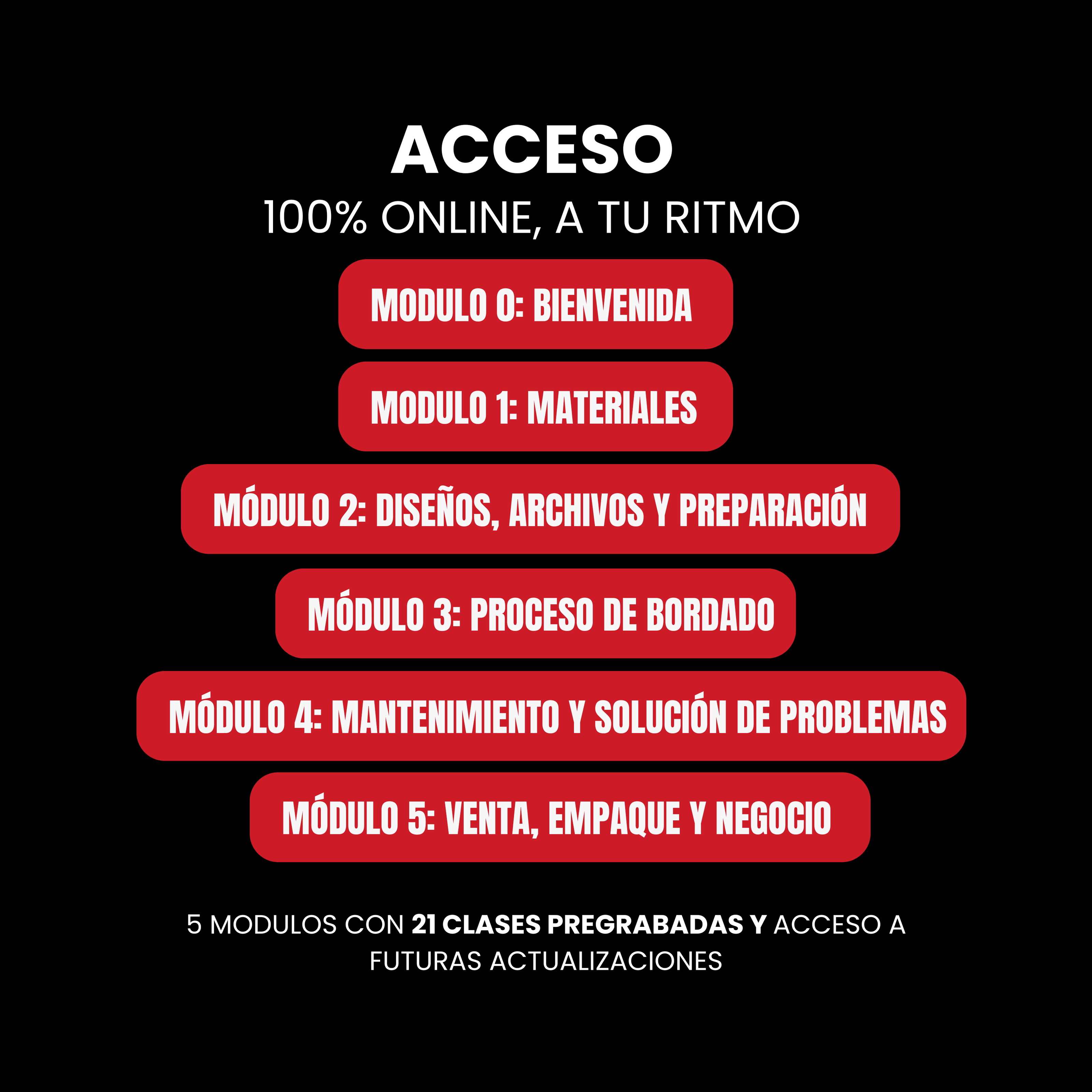 - 21 clases en video, grabadas paso a paso.