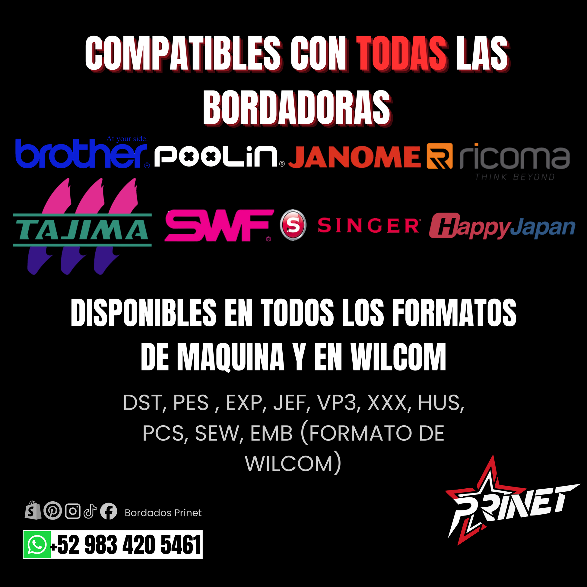 Archivos de alta calidad, compatibles con todas las bordadoras.